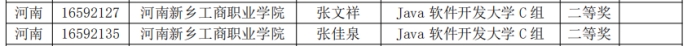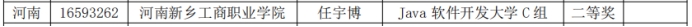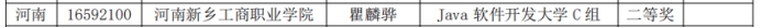 在此次激烈的角逐中,河南新乡工商职业学院的学子们凭借扎实的专业知识和出色的实践能力脱颖而出。马淑瑾、杨雪东、赵彦恺、李航宇、瞿麟骅、张瑞斌、张文祥、张佳泉、任宇博九位同学在Java软件开发大学C组的比赛中,一路过关斩将,最终均荣获二等奖。