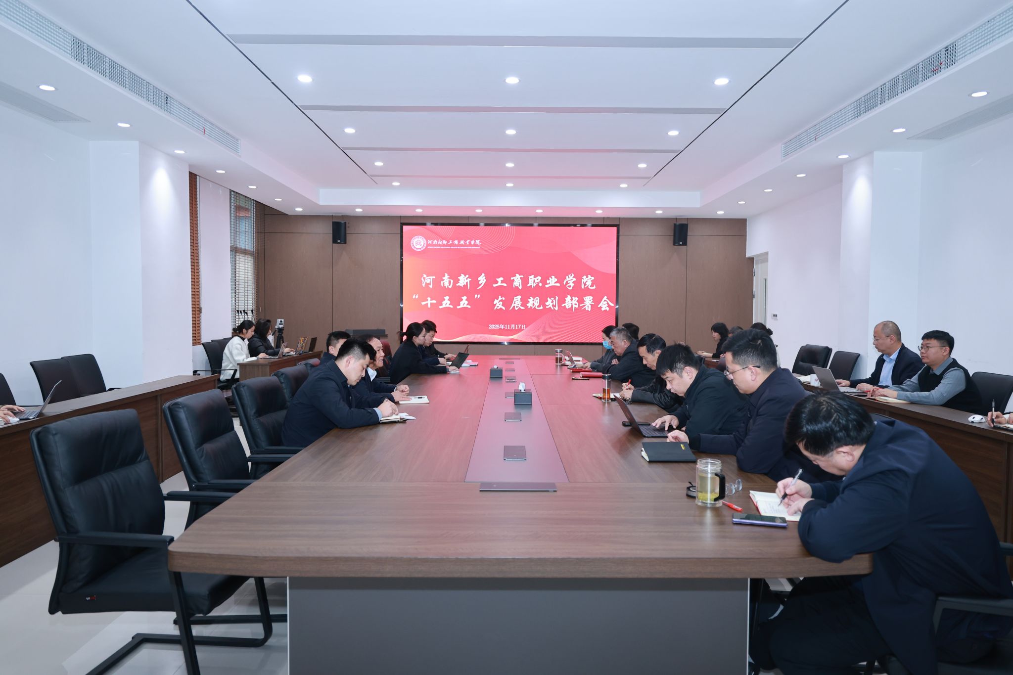 为深入贯彻职业教育高质量发展要求,系统谋划学校2026-2030年发展路径,夯实办学根基、彰显办学特色、提升办学水平,11月17日,河南新乡工商职业学院于教学楼7A212会议室召开“十五五”发展规划编制工作部署会。学校理事长杨刚、校长吴勇军,副校长杨文、石嘉、刘爱君、刘文娟出席会议,各职能部门负责人、各二级学院院长及副书记列席会议。