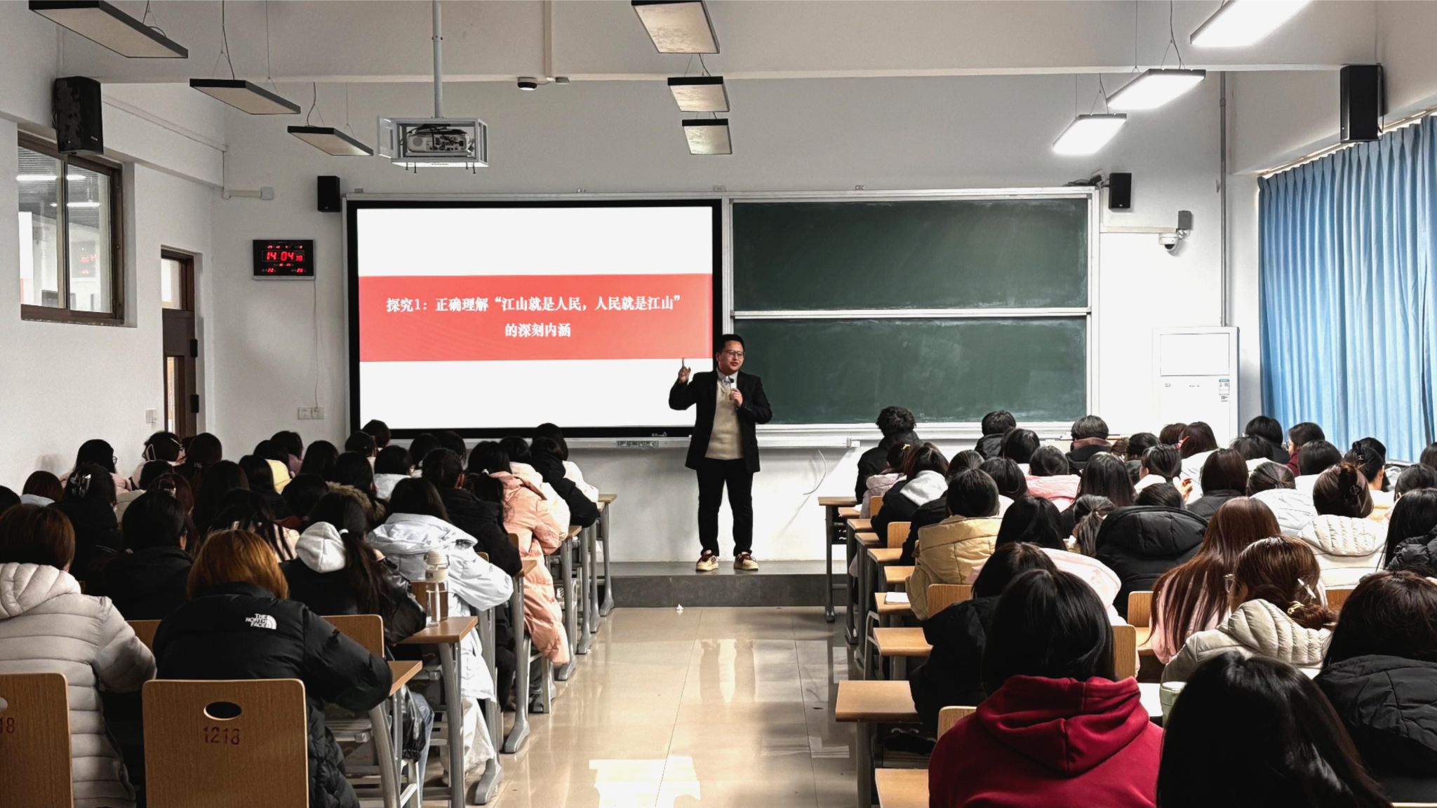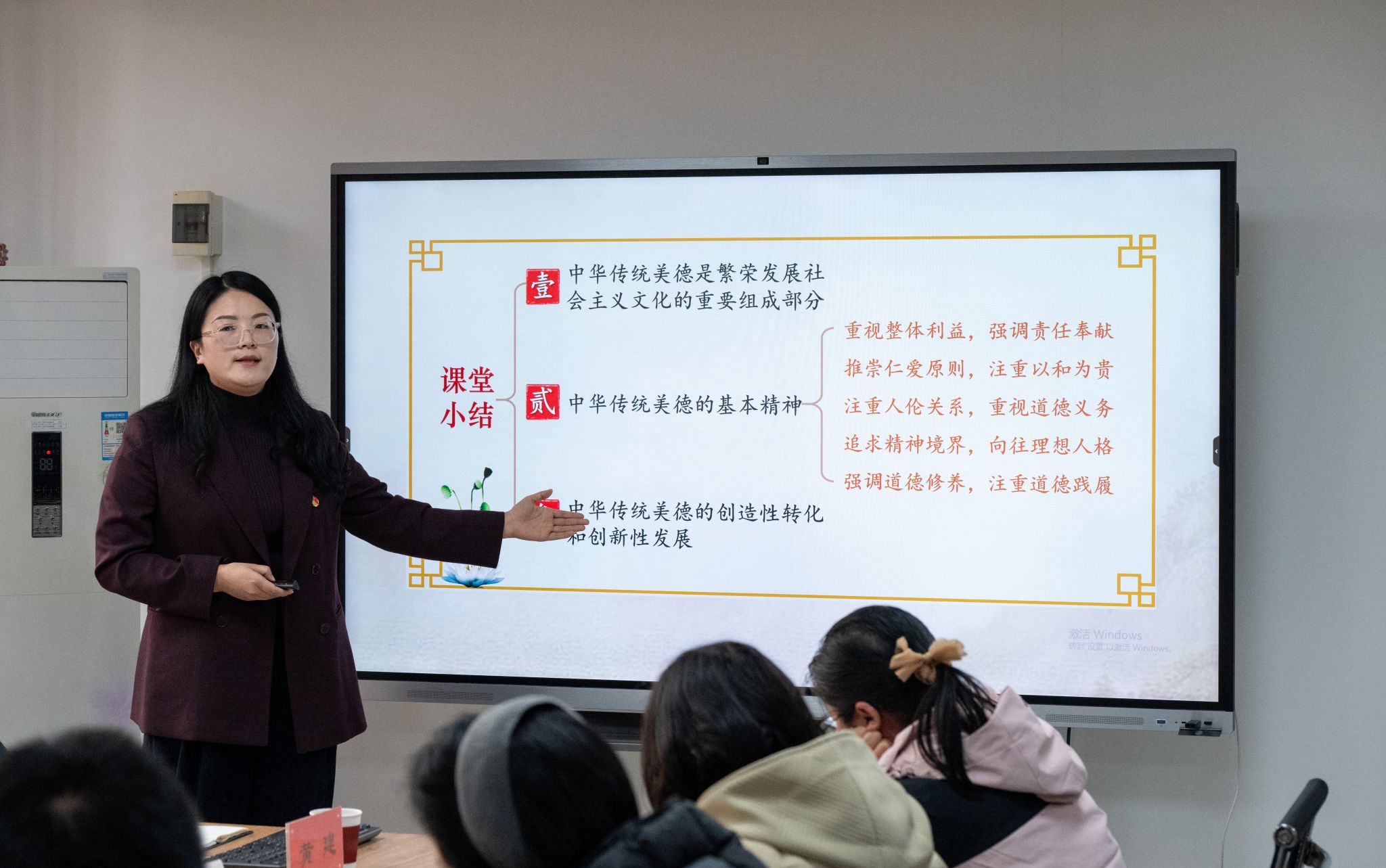 活动伊始,我校马克思主义学院袁进展老师结合《习近平新时代中国特色社会主义思想概论》以“江山就是人民 人民就是江山”为题有生讲授示范课,河南开放大学邓凌娟老师围绕《思想道德与法治》“中华传统美德”章节,分享了党的二十届四中全会精神融入思政课的教学思路与方法,均获两院师生好评。