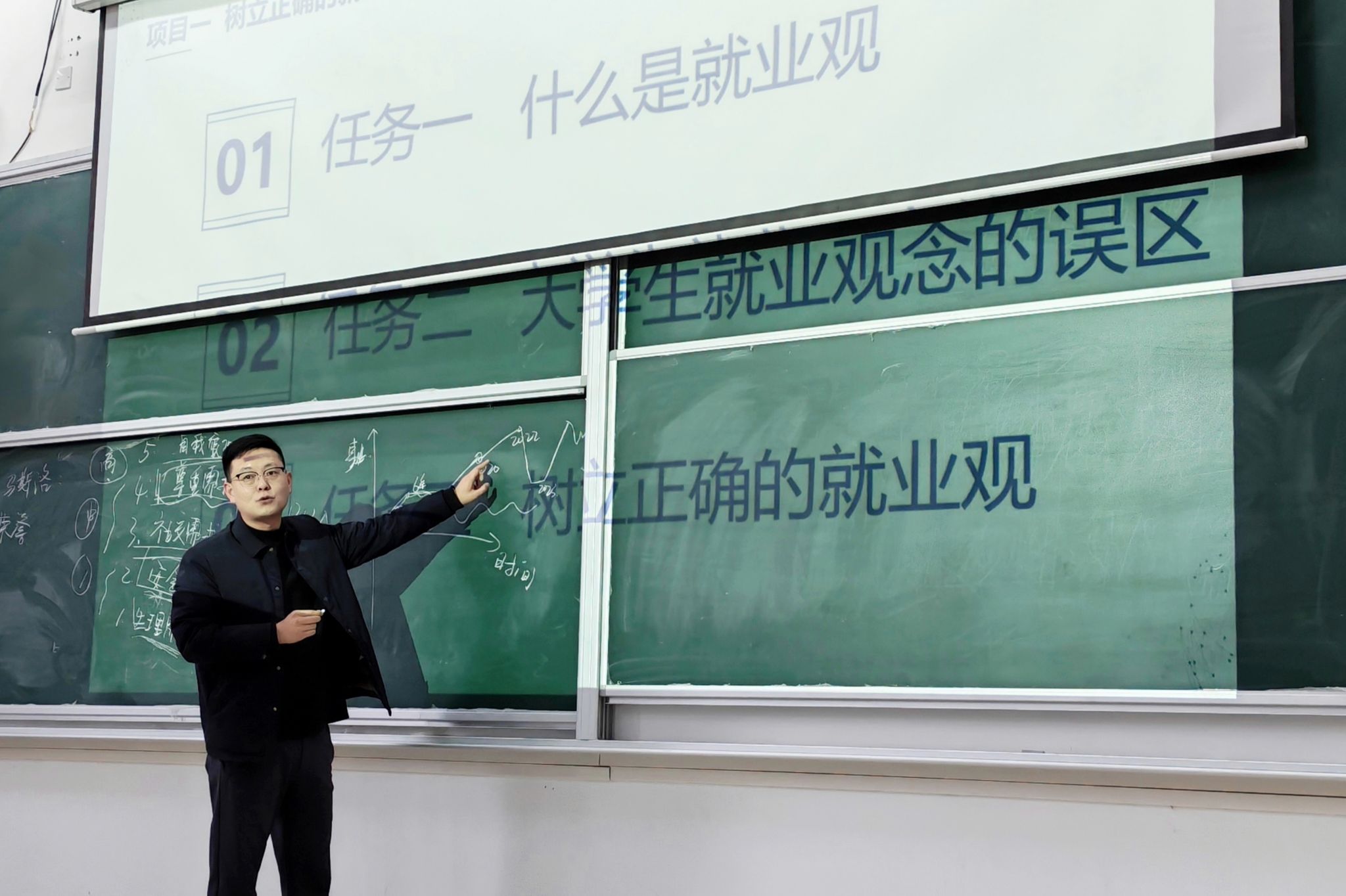 在厘清就业本质的基础上,姚处长进一步剖析了当前大学生在就业观念上可能存在的误区,通过列举一系列贴近现实的例证,警示同学们避免好高骛远、眼高手低、盲目从众等倾向。课程进而引导至“如何树立正确就业观”的关键环节,姚处长将课程思政元素有机融入教学,强调个人职业选择应与国家发展、社会需要同向同行,鼓励学生立足现实,志存高远,进行科学、理性、负责任的职业生涯决策与人生长远规划。