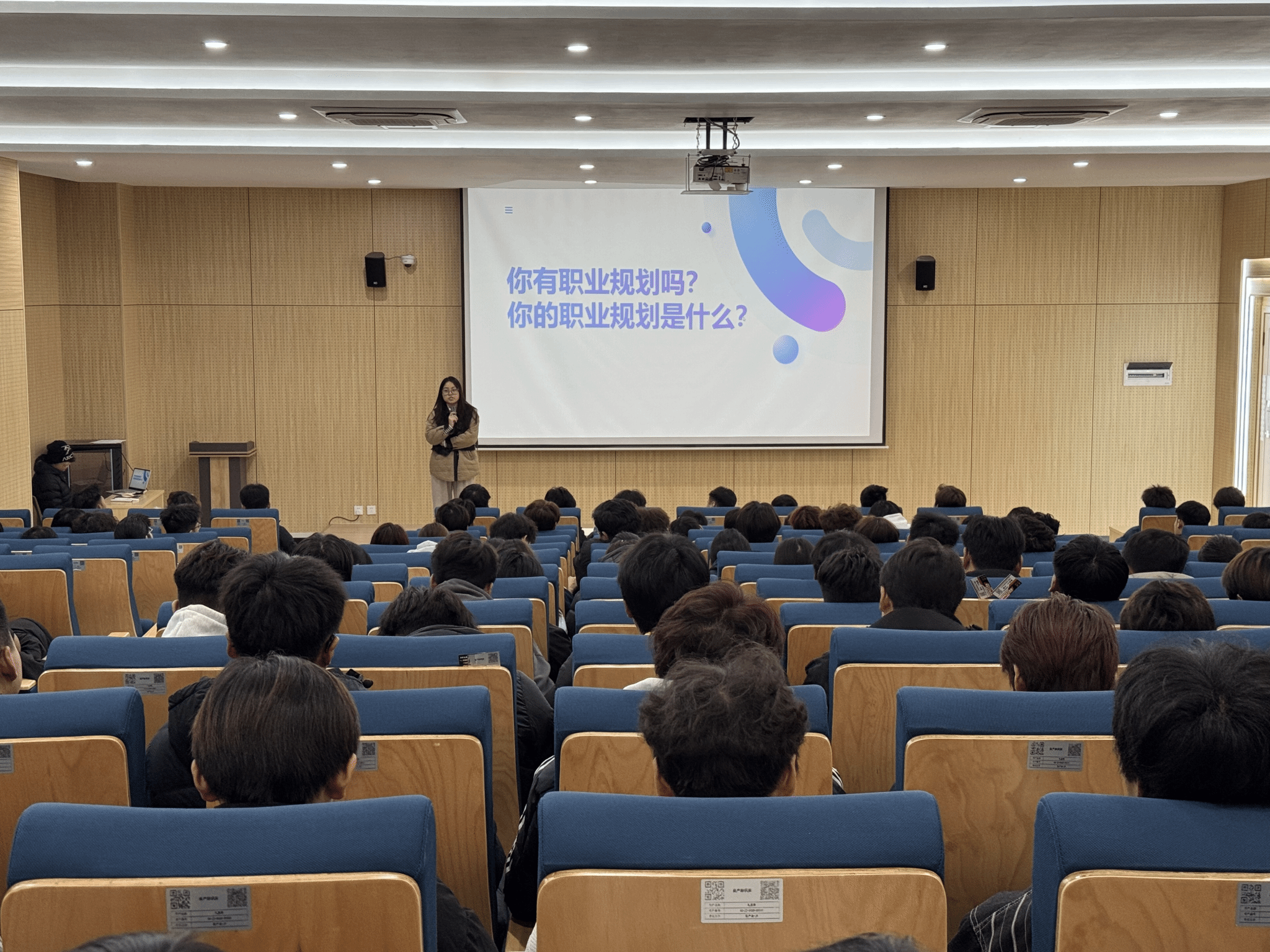 随后,辅导员老师从生涯教育的视角出发,系统阐释了职业生涯规划的本质内涵及其在人才培养中的关键作用。指出职业规划并非简单的就业准备,而是个体在认知自我、理解社会、把握趋势基础上进行的主动选择与持续调适过程。通过案例引导,老师们帮助学生树立“早规划、明方向、重实践”的发展理念,倡导将学业目标与职业理想相统一,将个人成长融入国家战略与产业发展大局。同时,鼓励学生充分利用校内外实践平台,在实习实训、创新创业和社会服务中锤炼意志品质、提升综合素养,实现从“被动受教”到“主动发展”的转变。