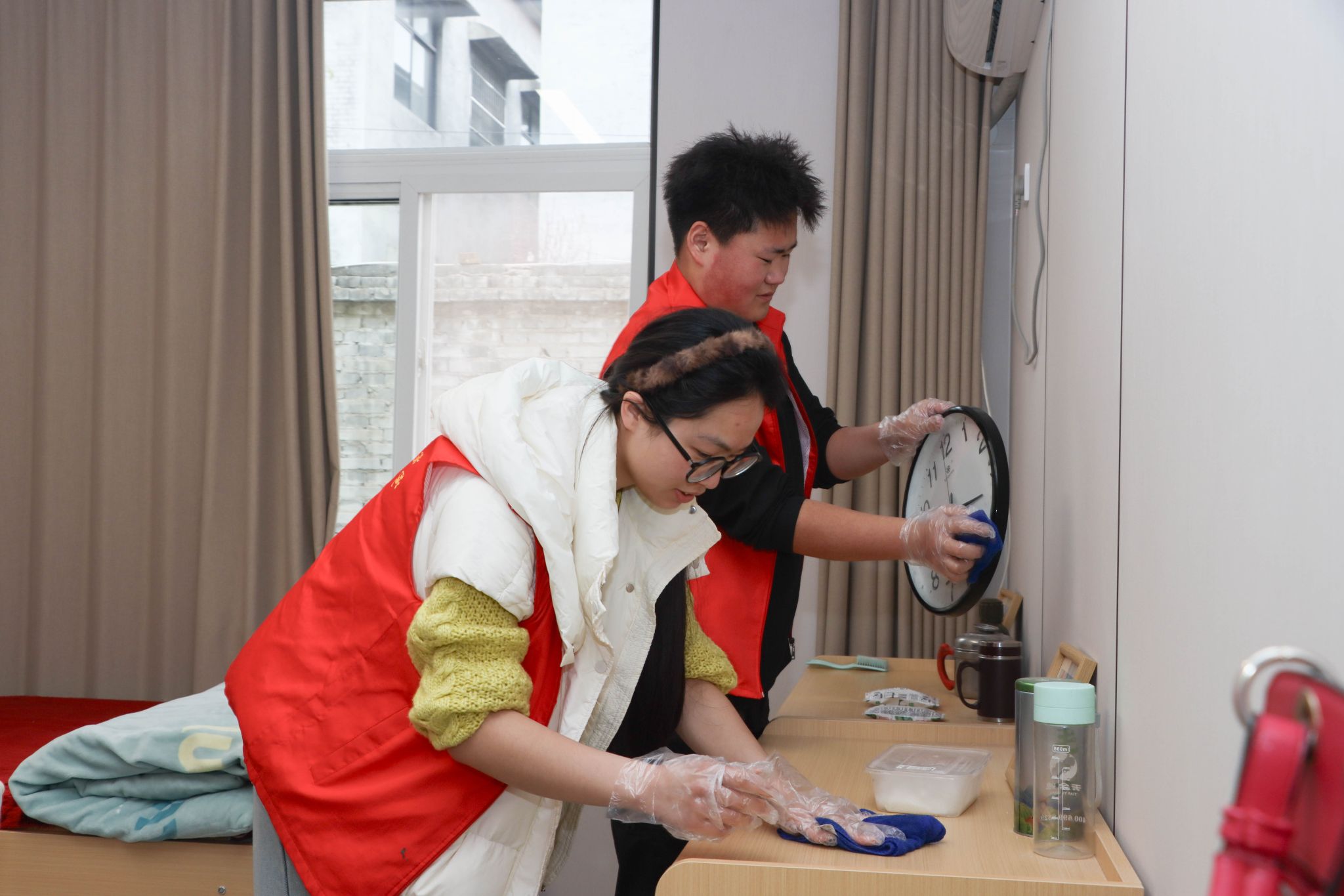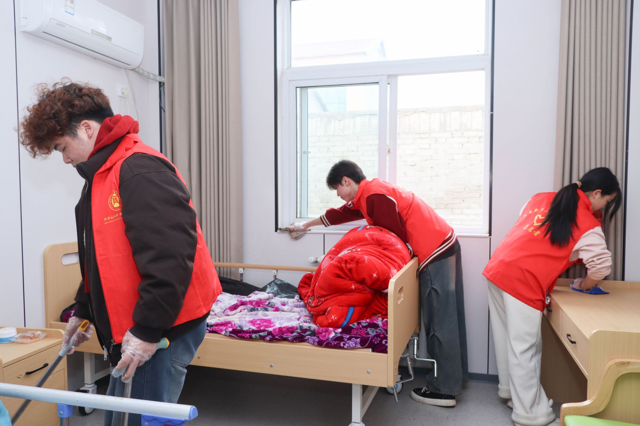 为给老人们营造整洁、舒适的生活环境,志愿者们拿起扫帚、抹布、拖把等工具,分组行动,干劲十足。他们认真打扫养老服务中心的生活区域,擦拭门窗桌椅,清扫地面灰尘,整理杂物,不放过任何一个卫生死角。