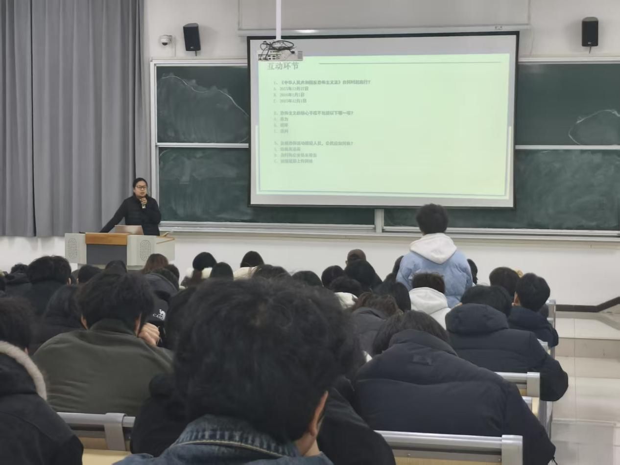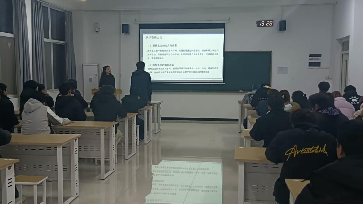 今年是《中华人民共和国反恐怖主义法》颁布十周年的重要时刻,该法律自2016年1月1日起施行,为我国反恐怖主义工作提供了坚实的法律基础和行动指南。数字智能学院通过举办主题班会,旨在加深全院学生对反恐怖主义法的理解,提高大家识别、防范恐怖活动的能力,共同筑牢校园安全防线。