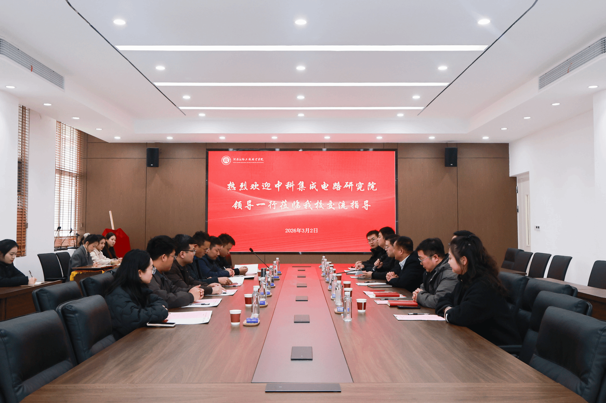 3月2日下午,河南新乡工商职业学院与郑州中科集成电路与系统应用研究院校企合作揭牌仪式在教学楼7A212会议室隆重举行。双方共同为“人工视觉实践研究中心”和“人工视觉校外实践中心”揭牌。郑州中科集成电路与系统应用研究院产业化处处长梁志军、人才培养公共服务平台主任时鹏飞、副主任段鹏飞,河南新乡工商职业学院执行校长吴勇军、产业发展中心(就业处)处长姚培、数字智能学院副院长李婉磊、副书记王毅,以及中科华积电机器视觉教研中心、数字智能学院教师代表汇聚一堂,共同见证这一重要时刻。