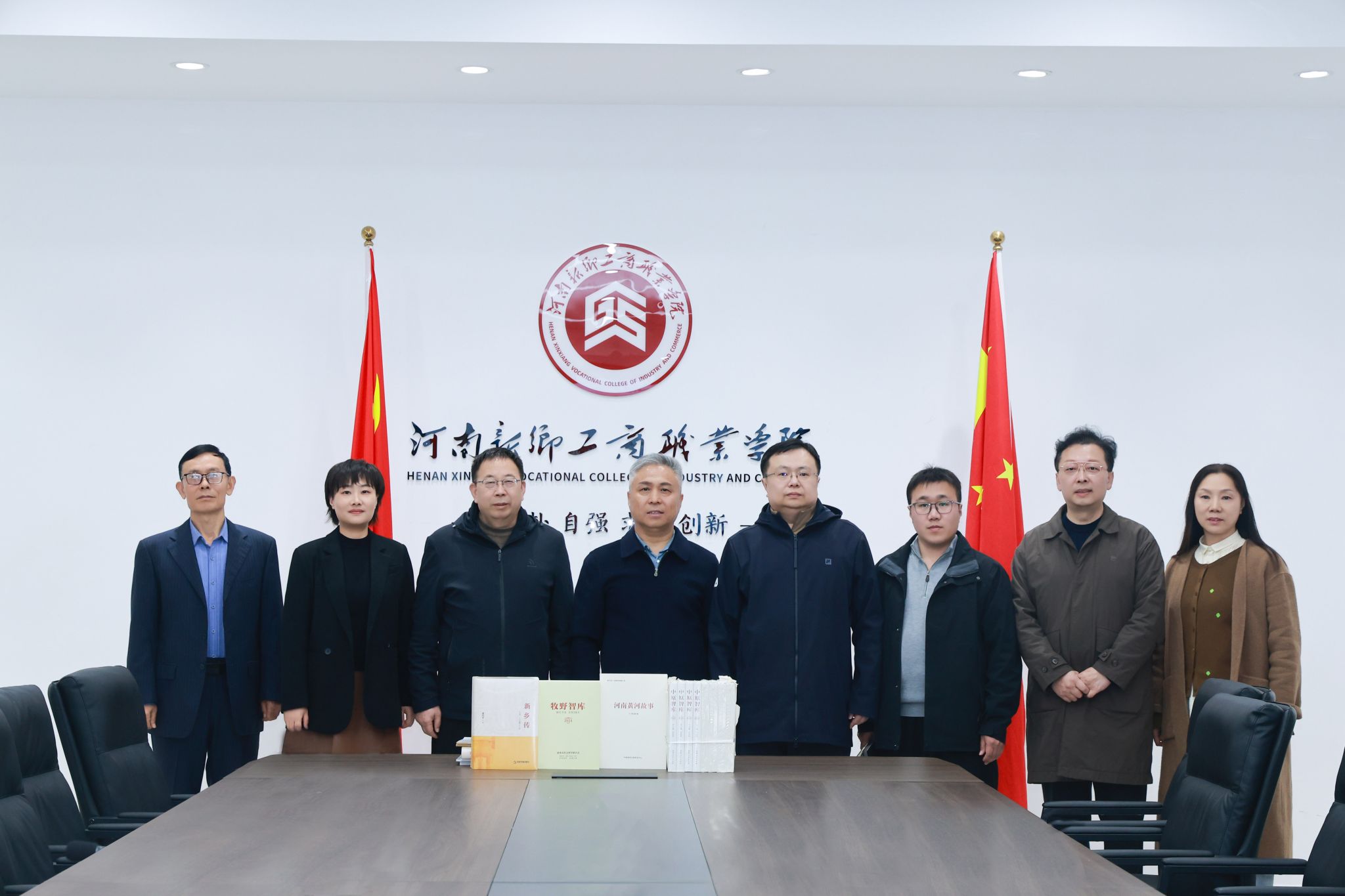 调研结束后,王力主席代表市社科联向我校赠送了一批社科类图书。赠书涵盖《牧野智库》《新乡传》《河南黄河故事》《中原智库》等精品力作,既有服务地方发展的智库成果,也有深耕地域文化的文史专著,充分体现了市社科联在推动社科研究、传承地方文脉、服务黄河国家战略等方面的扎实作为。校领导对市社科联的关心与支持表示感谢,并表示将用好这批图书资源,将其融入教学科研与思政育人实践,持续深化校地协同、社科赋能的育人成效。
