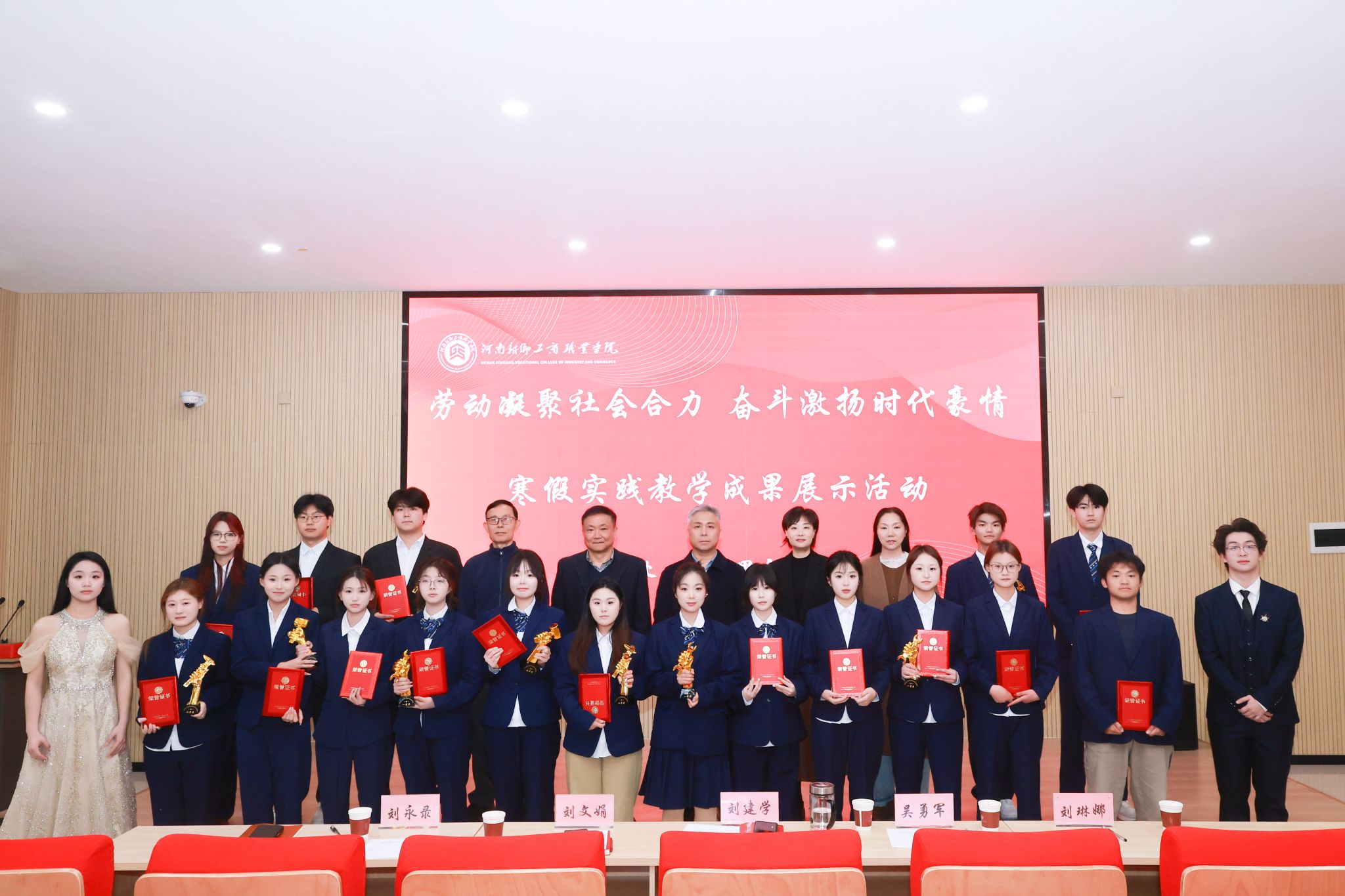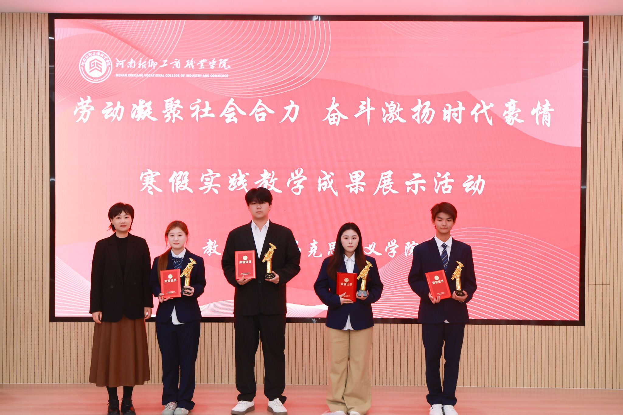 3月23日,河南新乡工商职业学院“劳动凝聚社会合力 奋斗激扬时代豪情”寒假思政课实践教学成果展示活动在教学楼红色报告厅圆满落幕。学校党委书记刘建学、执行校长吴勇军、副校长刘文娟、教务处处长刘永录、马克思主义学院院长刘琳娜出席活动并担任评委。