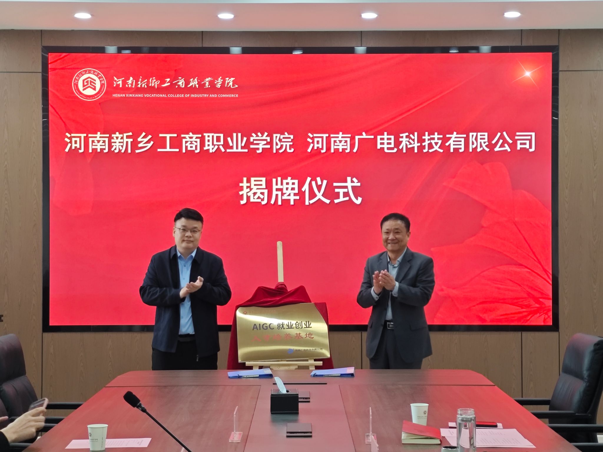 为深化产教融合、精准对接数字经济产业需求,共育AIGC领域高素质技术技能人才,4月13日,河南新乡工商职业学院与河南广电科技有限公司校企合作揭牌仪式在我校7A212会议室隆重举行。河南广电科技有限公司党支部书记、执行董事兼总经理陈宁,我校执行校长吴勇军及双方相关负责人、教师代表共同出席仪式。