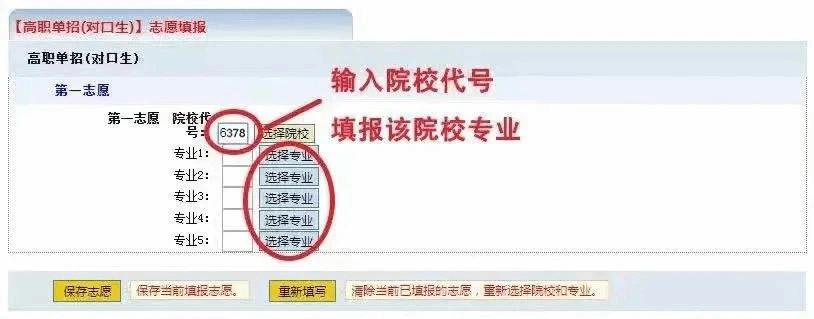 | 保存和重新填写志愿