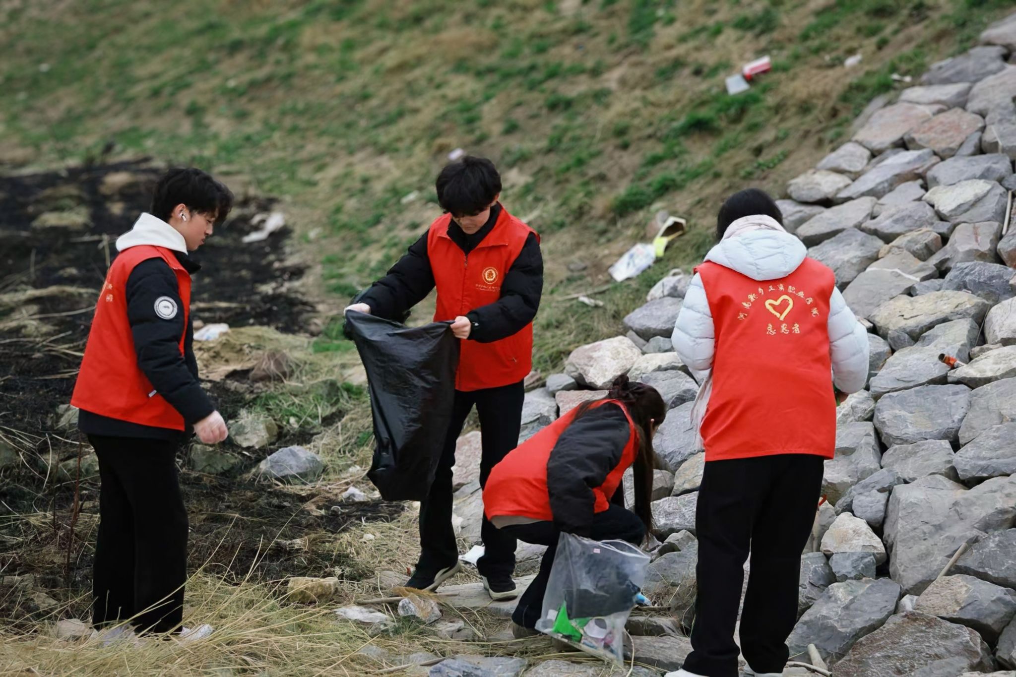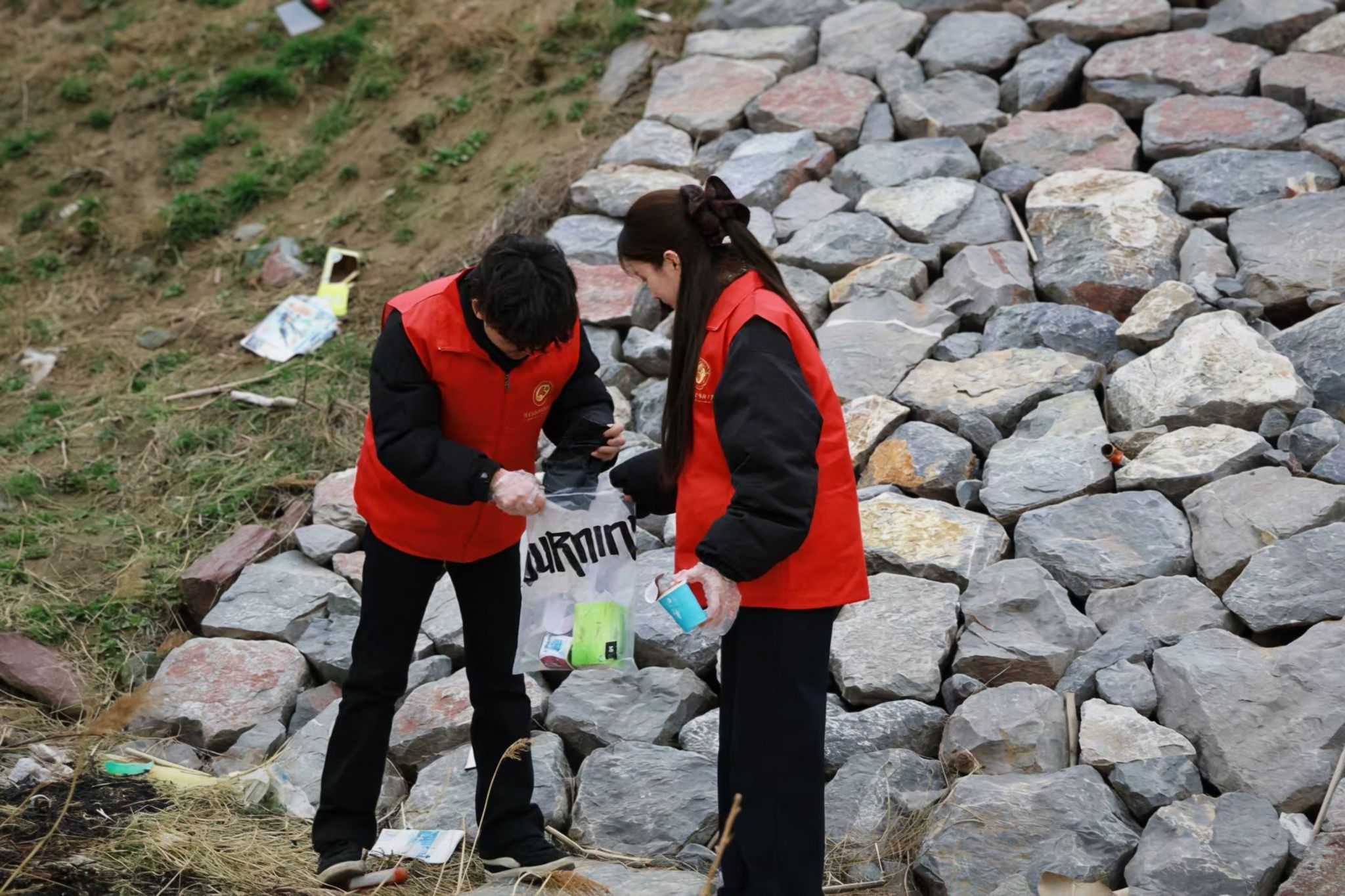 活动伊始,学院志愿者负责人在现场进行动员部署,明确净滩行动的任务目标、安全注意事项及环保要求,合理划分责任区域,细化分工安排,确保活动有序推进。随后,志愿者们手持长柄夹、垃圾袋等工具,沿黄河滩涂岸线展开地毯式清理。大家认真细致,不放过任何一个卫生死角,从显眼的塑料瓶、包装袋,到隐藏在草丛与石缝中的烟头、碎片,逐一捡拾、分类装袋。劳动中,志愿者们分工协作、默契配合,展现出昂扬向上的精神风貌和强烈的集体责任感。